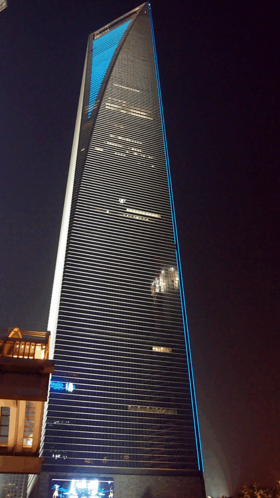 The building he refers to is formally named the Shanghai World Financial Center (上海环球金融中心), commonly abbreviated SWFC. Standing 492 meters tall, it was the tallest building in the world upon completion in 2009. But with Dubai’s 829-meter Burj Khalifa and Taipei’s 509-meter Taipei 101 soon entering the race, SWFC slipped to third place. In response—as if competing in a global skyscraper contest—China erected the 632-meter Shanghai Tower right next to SWFC, overtaking Taiwan once again.
