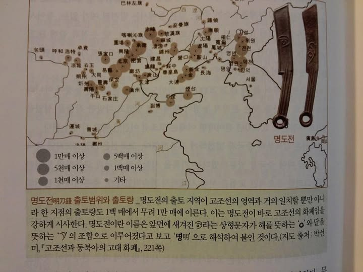 하지만 고조선의 실존을 부정하는 현 학계에서는 한국에서 출토된 가장 오래된 금속 화폐를 BCE6세기경의 중국 연나라 화폐인 명도전으로 봅니다. 그러나 명도전은 연나라 화폐라기보다는 고조선 화폐로 보아야 마땅합니다. 무엇보다 명도전이 출토된 지역이 고조선의 영역과 거의 일치합니다. 고대화폐 연구가인 박선미의 ‘명도전 출토지역 분포도’와 러시아학자 부찐의 ‘고조선 영역 지도에서는 명도전이 외국의 화폐가 아니라 고조선 자국의 화폐이기 때문에 일어날수 있는 일입니다. 더구나 연나라는 고조선의 적대국이었습니다.