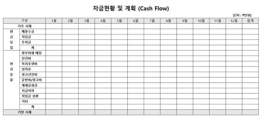 그냥 통장의 현금 잔고만 봐서는 안된다. 반드시 현금흐름표를 작성해서 봐야 한다. 적절한 시기에 적절한 자금조달은 기술이나 아이디어 못지 않게 사업성과에 영향을 미친다. 특히 자금을 어떻게 쓰고 관리하는가 측면에서 현금흐름표만큼 중요한 것은 없기 때문이다.