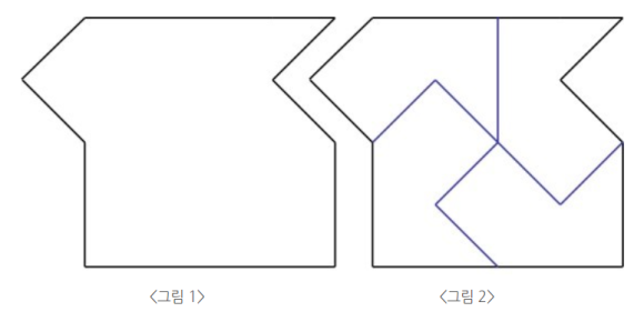 The division in <Figure 2> is quite complicated, and attempting a five-part version in that same manner is even harder. That’s the trap. Had I asked you to divide the shape into five parts without first showing the four-part example, many of you would have found the correct answer more easily.