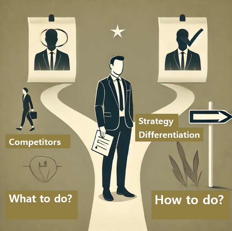 지금 내가 만나고 있는 고객은 경쟁자와 이미 거래하고 있고, 가격, 제품, 그리고 서비스로 경쟁을 하고 있으며, 내가 속한 회사는 한정된 자원 때문에 경쟁자 보다 더 나은 점을 제시하기 어려운 현실에 놓여 있는 경우가 대부분이기 때문이다. 따라서 경쟁자와 같은 방식으로 영업을 한다면, 영업의 어려움을 타개하기가 쉽지 않다. 그렇기 때문에 지금까지 해왔던, 자사의 제품이 우수하다고 떠드는 식의 영업 방식은 그만 두고, 무엇보다도 먼저 경쟁자를 찾아 조사하고 분석하여 그들과 다른 차별화로 무장하여, 경쟁자를 이길 수 있는 전략부터 찾는 것이 중요하다.